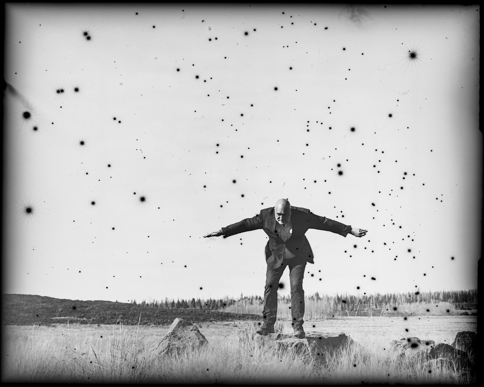 Echoes of Self is a seven-chapter exploration of memory, identity, and the passage of time in pursuit of my Ikigai, a Japanese concept that translates to “life’s purpose.” Created with a 4×5” large-format camera and the 1800s hand-coated dry plate technique on glass, the self-portraits use natural metaphors to craft a deeply introspective narrative. Each chapter, from Travel Memories, Whispers of Dreams, Silent Horizons, to Ties that Bind and The Pulse of Nature, reveals a different aspect of Schless’s evolving identity and the lingering echoes of his past.