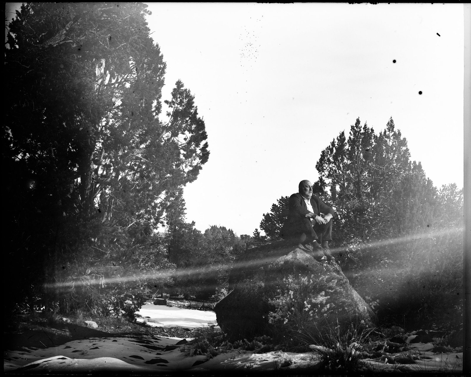 Employing the 4×5″ dry plate process, Schless slows time to revisit fleeting moments of connection, disorientation, and revelation. The series contemplates how movement through the world leaves behind subtle imprints, both in place and in self, revealing the tension between achievement and introspection, solitude and connection.